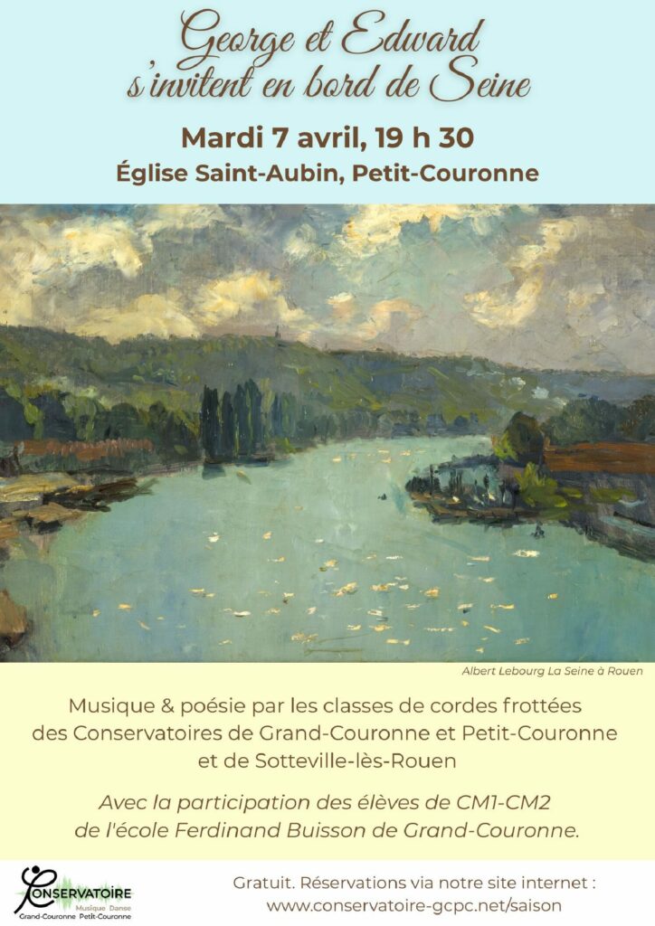 Georges et Edward s’invitent en bord de Seinemardi 7 avril, 19h30Eglise St-Aubin, Petit-Couronne Réserver une place × Votre nom : Votre prénom : Votre adresse e-mail : N° de téléphone : Nombre de places : Les réservations sont limitées à 2 places par famille pour cette date. Annuler Envoyer < Retour à la saison